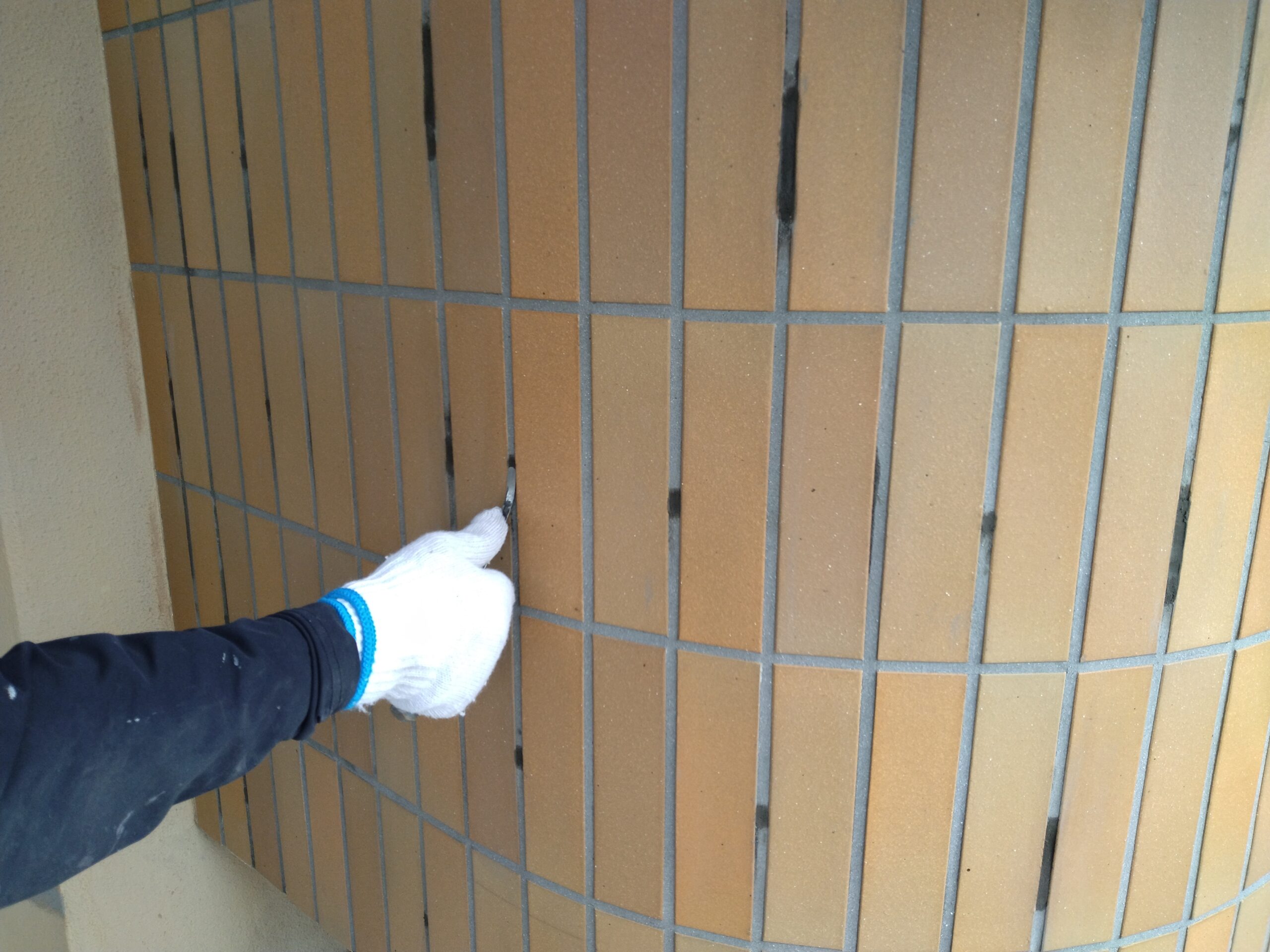 仕上げに目地色にあわせた目地材を選定して穴を埋めていきます。