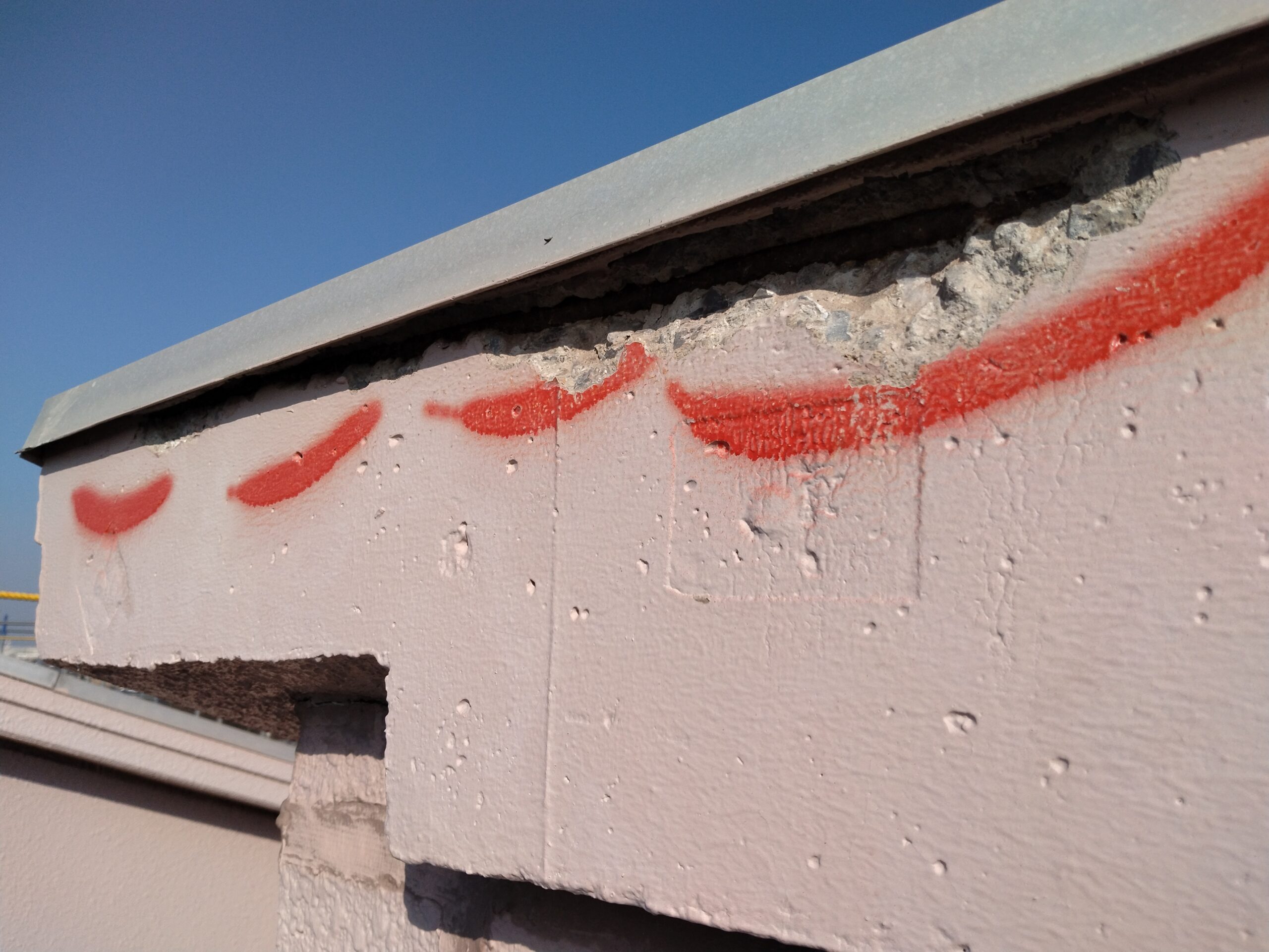 少量ではありましたが、各所にて露筋を伴う欠損も確認できました。